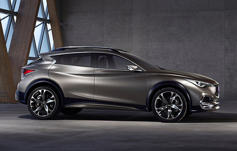 Компактный кроссовер QX30 от компании Infiniti был представлен в автосалоне Женевы. В роли «сердца» будет выступать «турбочетверка» объемом 2 литра, работающая совместно с семиступенчатым автоматом. Но есть еще и дизельный вариант. У модели установлен пластиковый защитный обвес нижней части кузова, рейлинги на крыше, защитная пластина днища сзади и колесные диски на 21 дюйм. Салон представляет собой кожаные сидения, светодиодная подсветка, металлические вставки и развлекательный центр InTouch.