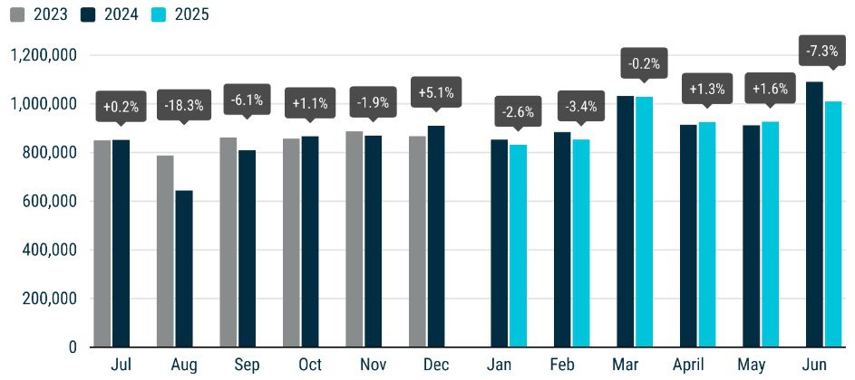 В прошлом месяце спрос на новые автомобили в ЕС снизился на 7% по сравнению с июнем 2024 года, отчеты Укравтопром. и дизельные машины.