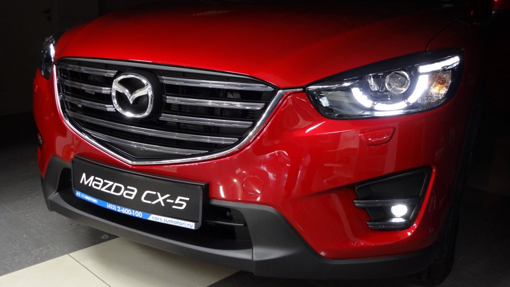 677225 (1) Первый автомобиль обновленной модели Mazda CX-5 поступил к дилеру компании во Владивостоке. Данная модель начала производиться еще в январе этого года на заводе «Соллерс». Стоимость автомобиля с базовой комплектацией составляет 1,18 млн. рублей, а стоимость Mazda 6 составляет от 1,06 млн. рублей. Топовая комплектация помимо этого включает в себя установку двух зонного климат-контроля, доступ без ключа, салон из кожи и Bluetooth система. Модели получили новый экстерьер, подсветку LED, электрический стояночный тормоз, для коробки автомат режим спорт и новая система безопасности.