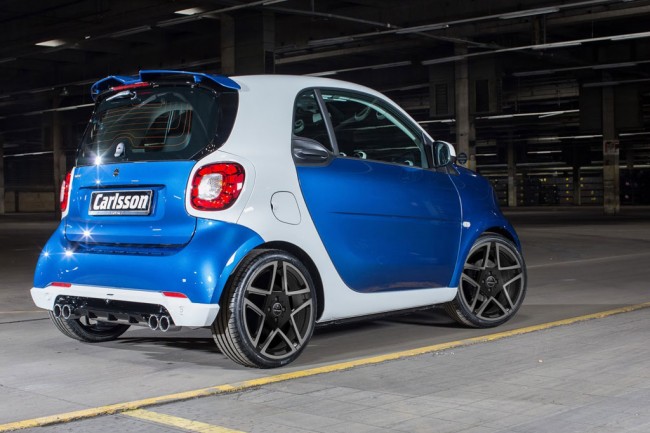 Мастера из фирмы Carlsson доработали модель Smart ForTwo 3 именуемый CK10 которого выставят на показ в Женеве. Апгрейд не затронул двигатель и ходовую, но над внешним видом и салоном хорошо поработали. Установлены шикарные диски на 17″, спойлер и дифузор. Так же изменились бамперы и выхлопная система. Салон этого автомобиля украшают фирменные коврики, на педалях металлические накладки и установлена подставка для отдыха ноги. Стоимость такого удовольствия не уточнялась. В будущем компания надеется на апгрейд движка и ходовой.